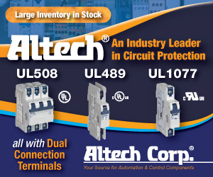 | | | | | | | | | Advertisement | | | | In today’s very competitive marketplace you need reliability, so you need to use circuit breakers that are high quality and technically correct for your application. Altech is a US leader in DIN rail mounted breakers with ratings up to 63A. Only Altech offers DIN rail mounted breakers that meet UL489, UL508 or UL1077 approvals with a short circuit interrupt capacity of up to 10kA. No other manufacturer offers this complete line. This assures you the right product for your application requirements. |