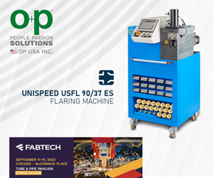 Advertisement | | | | O+P is pleased to introduce the ideal solution for 37° and 90° orbital flaring of hydraulic rigid tube ends. It’s perfect for tubes with bends up to 180° with tight radius (such as shaped rigid tubes, steel and hose combined connections, etc.), thanks to its innovative clamping system. The machine uses a cold orbital forming process to create a flat and smooth sealing surface with a suitable rugosity for the O-ring seal. |